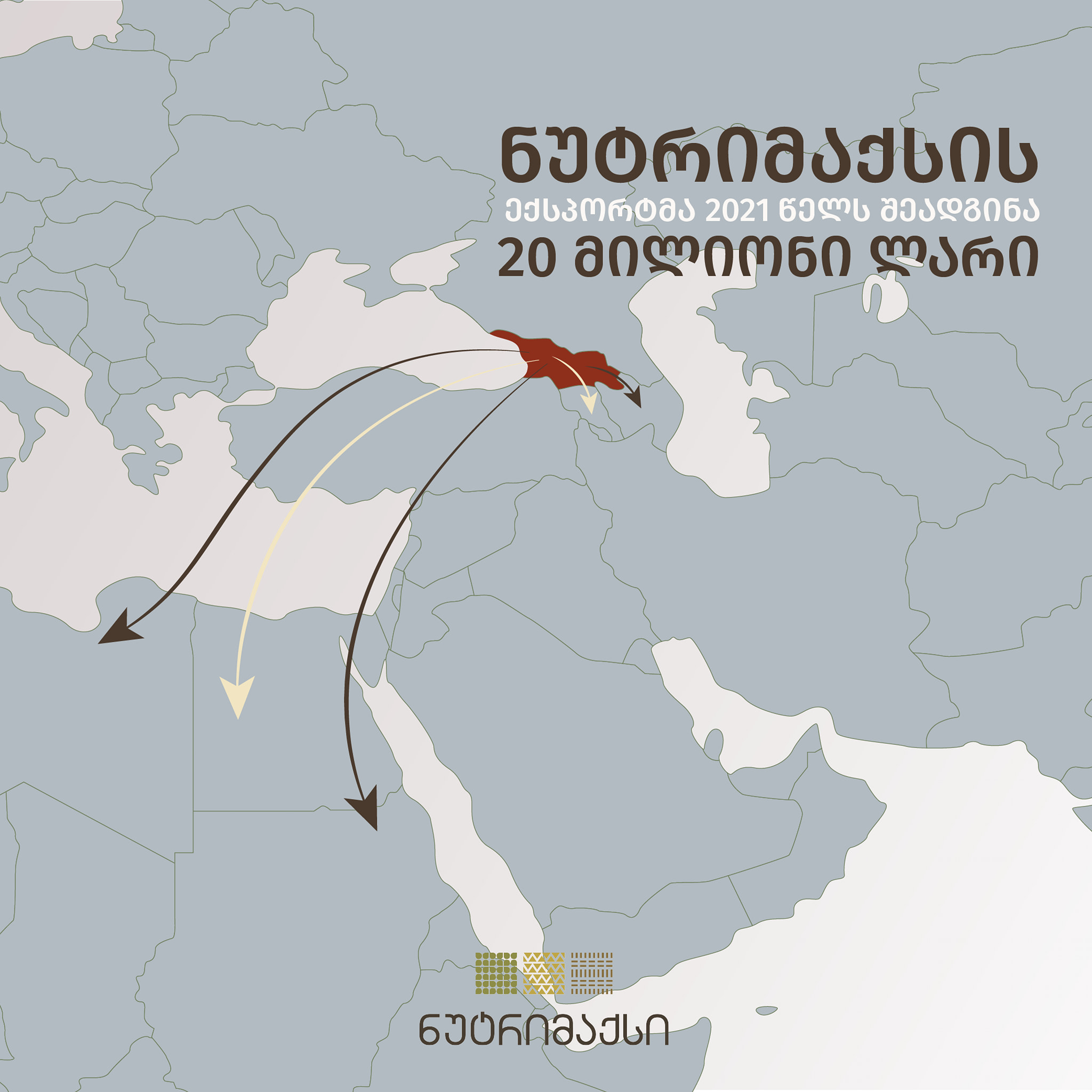 2021 წლის ნუტრიმაქსის ექსპორტის სტატისტიკა: ექსპორტის ჯამური ოდენობა - 15 000 ტონა. ექსპორტის საერთო ბრუნვა - 20 00...